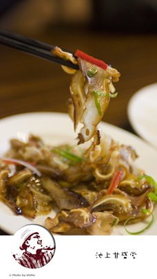 俏俏話指的就是豬耳朵啦!用耳朵來傳達俏俏話,反而讓這道小菜名字更有趣了,脆度應該是這道小菜要求的,有點油但不會太匿,鹹味也適中,還有一股簡單的煙燻香,豬耳朵加蔥是很平常,但甘盛堂還加了紅椒,整道菜看起來也很漂亮。