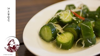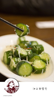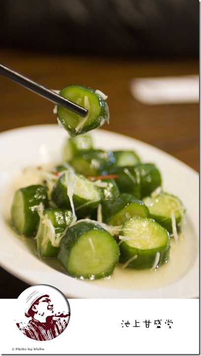 小黃瓜也有一個漂亮的名字,綠色的翡翠,脆度OK,帶一點微酸,這道菜比較特別是薑絲,因為泡的久,薑就只有淡淡的味道,做為一個稱職的配角,沒有薑的嗆辣,很完美的襯托出小黃瓜的原味。