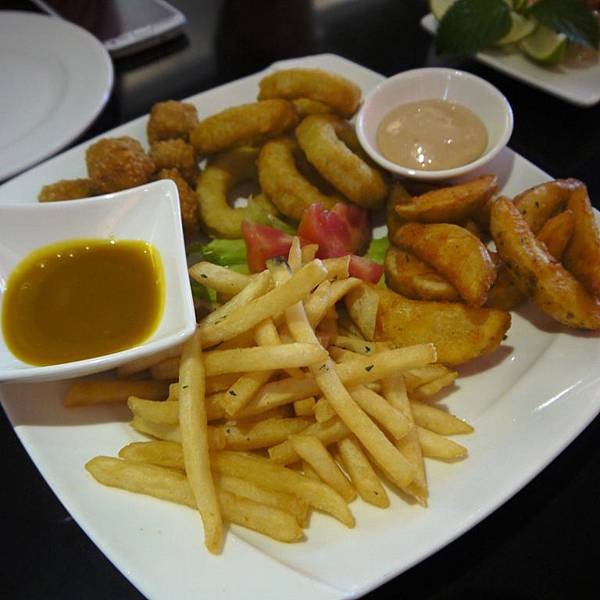左邊黃黃的醬汁是老闆自製的蜂蜜芥末醬,吃起來特別清爽