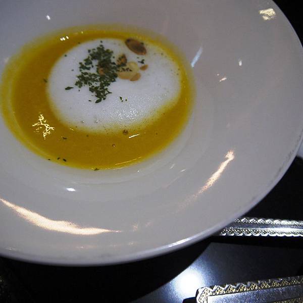 小小嚐了一口就知道這一定是新鮮南瓜熬煮的濃湯