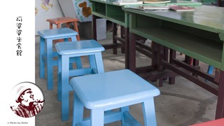 一走進阿婆婆米食館,看到的一花一草一木都是阿婆婆自己一個人每天在整理的,地上畫著小時候在三合院會跟一群表兄弟姐妹一起玩的跳格子,還有小學時候上課坐的小椅子與小桌子,這是布雷克小時候都會遇過的事與物,但是現今的小朋友很少有這樣子的生活環境。