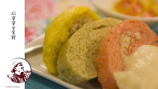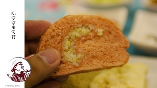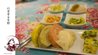今天吃到的米饅頭主要是四種口味,原味、紅麴、香椿、枸杞,其顏色都是原本食材的顏色,不像外面的人工色素,不取巧也不偷懶,用紅麴做成了紅饅頭,用香椿做成綠饅頭,這綠也不像外面那種很豔的綠,用枸杞做成的黃饅頭,與原味的白饅頭,還記得布雷克有一次在外面吃自助餐,夾菜的大姐一邊夾菜,一邊就說吃東西就要吃五行,每一總顏色都要攝取才健康,阿婆婆米食館的米饅頭應該也是這樣地養生健康原理來做成的。