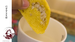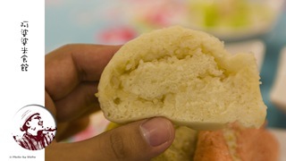 米饅頭吃起來超級膨鬆的,應該會很多人響問裡面的糙米粒吃起的感覺如何?其實米粒蒸過後,並沒有太多的米粒感,但是多了許多的糙米香味,微微的黏稠感,跟外皮的米饅頭結為一體,多咀嚼幾口,甜味漸漸的散發出來,食材原本所有的甜味,接著就是米黏呼呼的感覺。跟關山親水軒南瓜米蛋糕口感很像,但是味道比他淡一點,卻有著一種可以持續很久的黏稠甜味。沾著米漿吃黏稠感更明顯,甜味會因為無糖的米漿襯托下更突出。